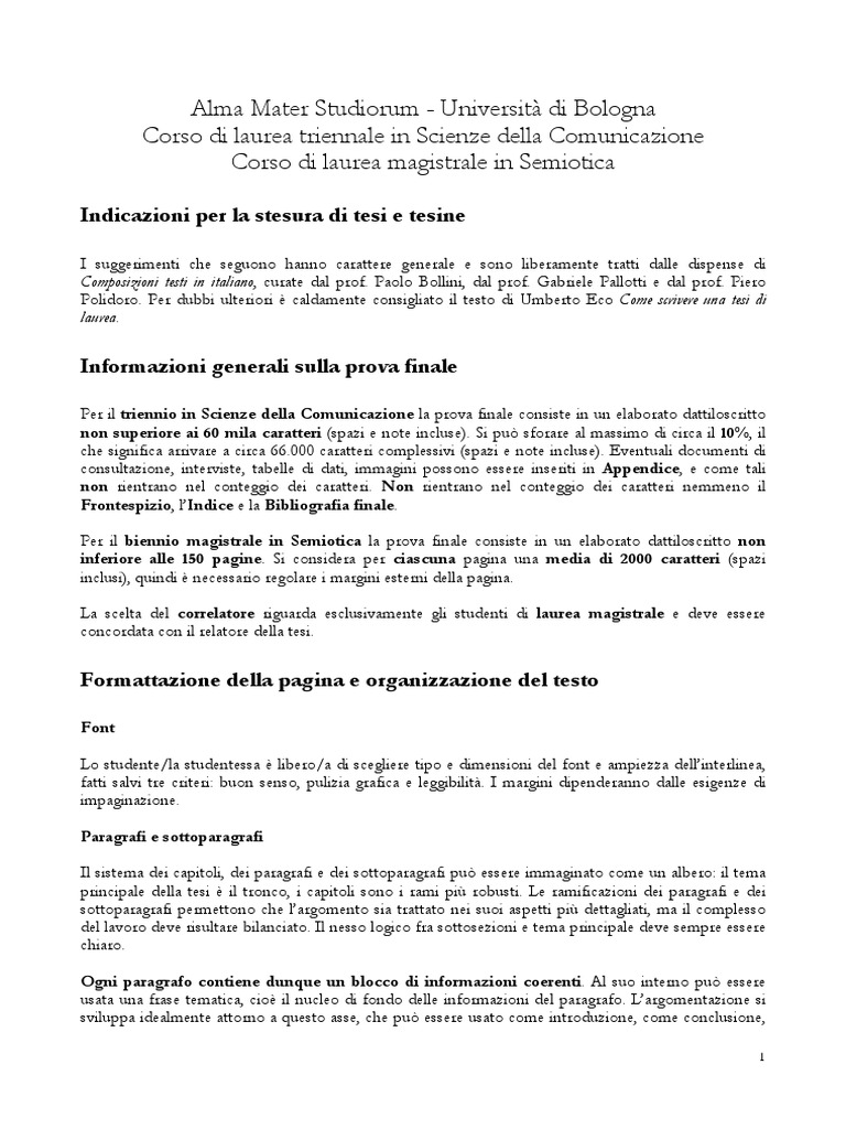 Indicazioni Per La Redazione Della Tesi Di Laurea Pdf